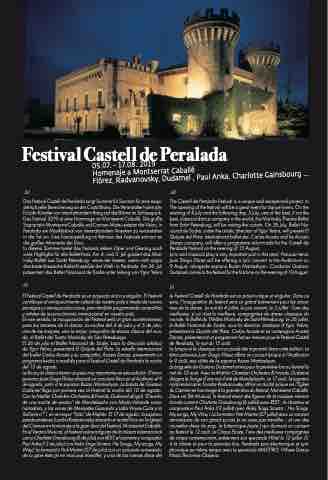 Das Festival Castell de Peralada sorgt Sommer für Sommer für eine exqui- site kulturelle Bereicherung an der Costa Brava. Die Veranstalter holen Jahr für Jahr Künstler von internationalem Rang auf die Bühne im Schlosspark. Das Festival 2019 ist eine Hommage an Montserrat Caballé. Die große Sopranistin Montserrat Caballé und Carmen Mateu setzten die Vision, in Peralada ein Musikfestival von internationalem Ansehen zu veranstalten in die Tat um. Eine Fotoausstellung im Rahmen des Festivals erinnert an die großen Momente der Diva.