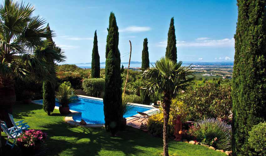 Diese Villa im Bungalowstil wurde 2000 neu gebaut. Das Objekt begeistert mit mediterranem Stil und sonnigen Farben. Der par-kähnliche Garten mit Palmen, Zyp-ressen und blühenden Sträuchern ist ein paradiesischer Ort zum Re-laxen. Der 4 x 9 Meter-Pool mit Rö-mischer Treppe bildet das Highlight der Freizone. Großzügige Terras-senfächen mit reichlich Raum für das Leben unter freiem Himmel ent-sprechen dem südlichen Feeling. Von hier schweift der Blick unge-hindert über die Bucht von Roses, die Weite des Empordà bis hin zu den Pyrenäen. Das Meer immer vor Augen, genießt man das milde Mit-telmeerklima.