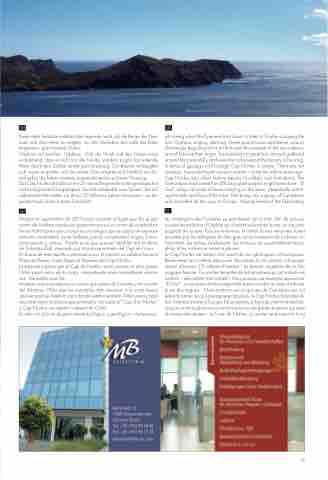 into being when the Pyrenees bent down to listen to Orpheus playing the lyre. Orpheus, singing, dancing, Greek god of music and dance, was so charmingly beguiling at his art that even the tempest of the sea calmed, and all foes lost their anger. The trees bent to greet him, animals gathered around him peacefully, and even the rocks wept at the beauty of his song. In terms of geology and biology Cap Norfeu is unique. There are, for example, traces hinting at volcanic activity – some ten million years ago. Cap Norfeu also offers bizarre beauty of unlikely rock formations. The Tramuntana has formed the cliffs as a giant sculptor might have done. “El Gat”, a big cat made of stone is lazing on the shore, perpetually watch- ing the ebb and ow of the tides. We bump into a group of Canadians who travelled all the way to Europe. Having heard of the fascinating